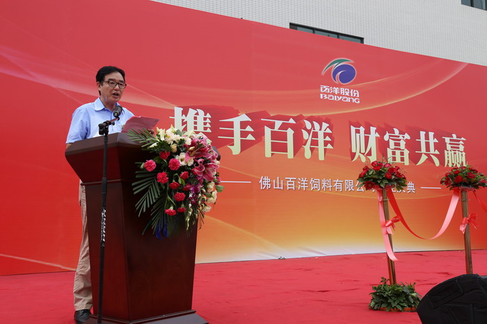 2016年6月13日,百洋股份旗下佛山百洋飼料有限公司廣東省佛山市高明區(qū)舉行開(kāi)業(yè)慶典。集團(tuán)董事長(zhǎng)孫忠義、執(zhí)行副總裁王玲、副總裁楊思華以及來(lái)自廣東各地的經(jīng)銷商和供應(yīng)商代表近600人參加了此次開(kāi)業(yè)盛典。