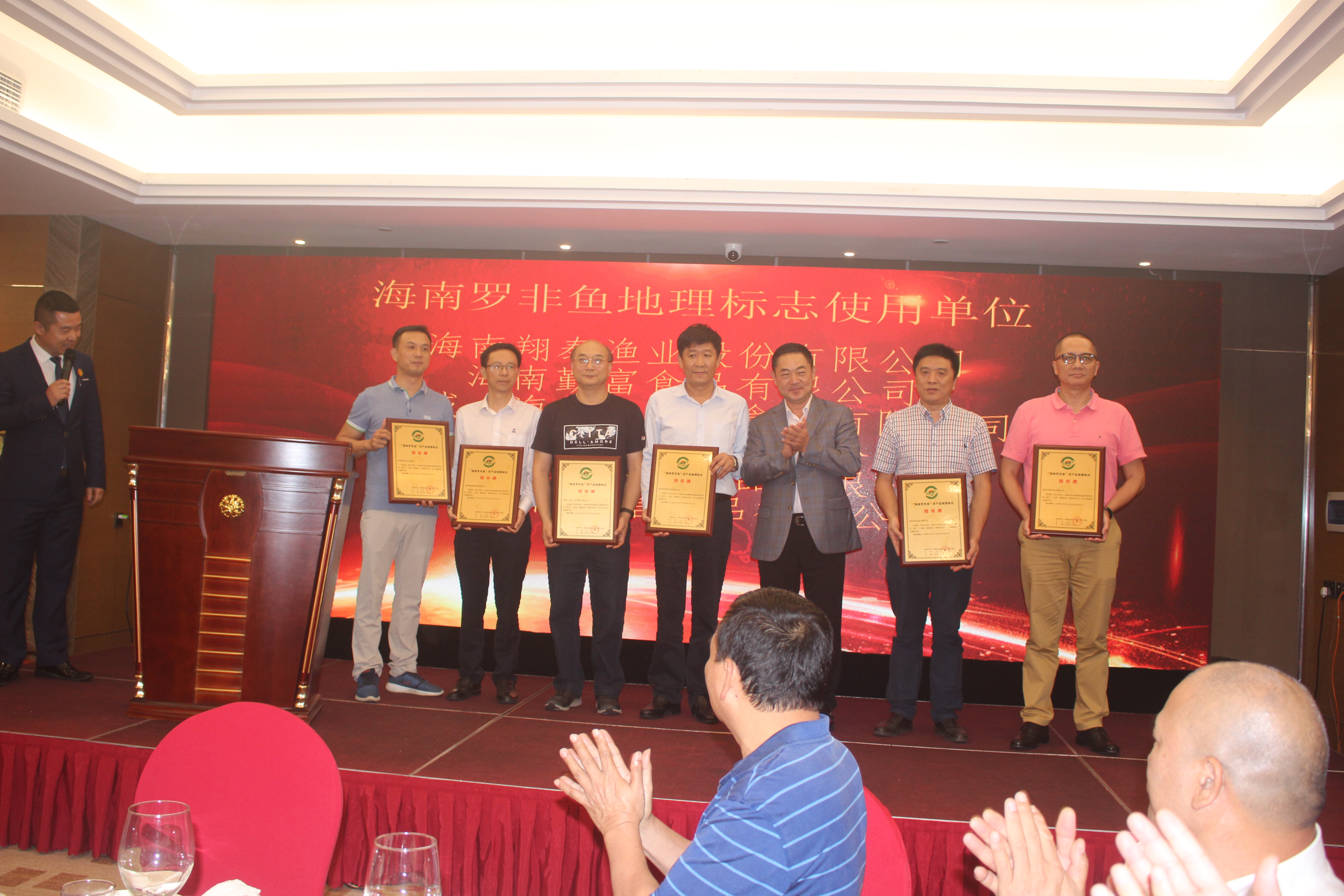 佳德信公司徐金鋐總經(jīng)理(右一)參加“海南羅非魚”地理標(biāo)志授權(quán)儀式。