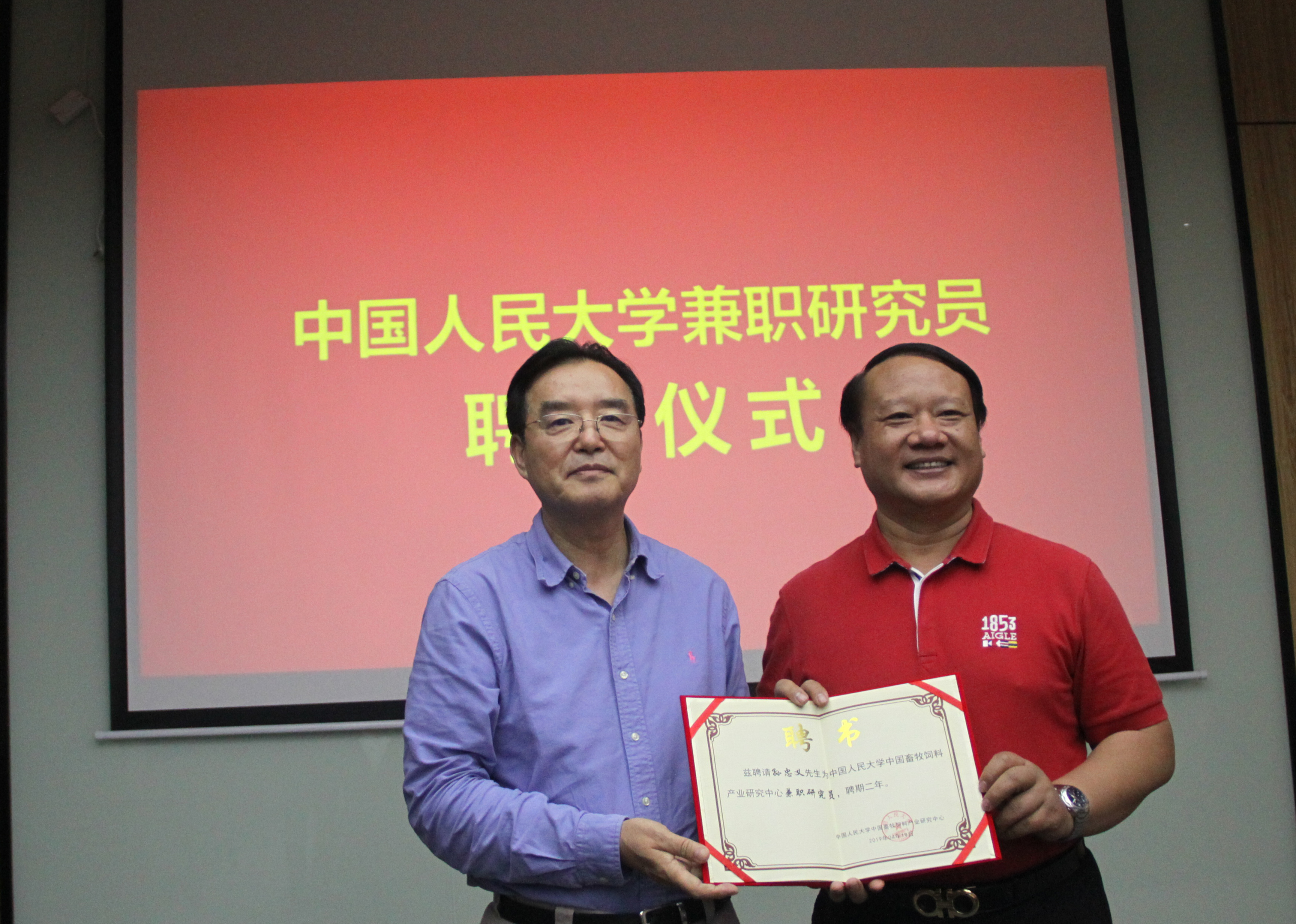 在交流座談會上,張利庠教授一行詳細(xì)了解了百洋股份近二十年來不平凡的發(fā)展歷程,深入了解羅非魚“一條魚價(jià)值工程”,以及百洋股份飼料、生物制品、環(huán)保、教育培訓(xùn)等各業(yè)務(wù)板塊發(fā)展情況,以及百洋在企業(yè)發(fā)展、經(jīng)營管理等方面的經(jīng)驗(yàn),張利庠教授一行對百洋股份在各業(yè)務(wù)版塊取得的成績表示高度的贊賞;與會中國人民大學(xué)農(nóng)牧MBA校友們還就畜牧飼料行業(yè)發(fā)展形勢、飼料行業(yè)相關(guān)新政策等進(jìn)行了深入的交流。隨后,張利庠教授代表中國人民大學(xué)中國畜牧飼料產(chǎn)業(yè)研究中心為孫忠義董事長頒發(fā)聘書,聘請孫忠義董事長為中國人民大學(xué)中國畜牧飼料產(chǎn)業(yè)研究中心兼職研究員。
