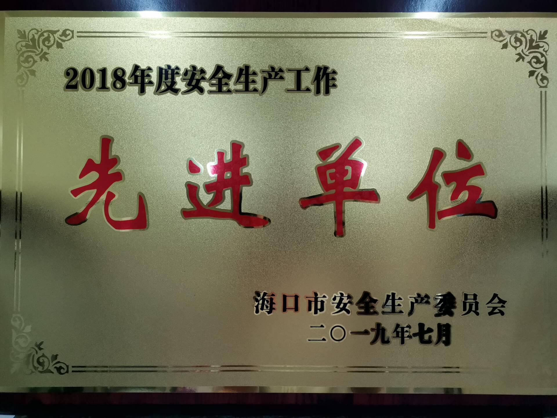 海南佳德信食品有限公司 榮獲“??谑?018年安全生產(chǎn)先進單位”稱號