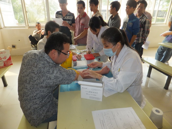 醫(yī)護人員正在為員工進行血常規(guī)檢測。