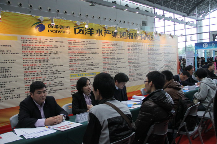 雖然連日來陰雨綿綿,但仍舊擋不住求職者找工作的熱情,大會當日會展中心人頭攢動,場面火爆。憑借百洋集團在行業(yè)內(nèi)的影響力,上午10時,公司的展位前已經(jīng)排起了長龍,各個事業(yè)板塊的負責人正有條不紊地對求職者進行面試。隨著近年來百洋集團跨越式發(fā)展的步伐越來越快,各事業(yè)板塊如飼料板塊、食品板塊、生物制品板塊的人才需求也在不斷增加。集團具有競爭力的薪酬福利、完善的人才培養(yǎng)體系、廣闊的發(fā)展空間吸引了不少中高端人才前來應(yīng)聘,其中不乏海外留學生、專業(yè)的技術(shù)型人才、既懂經(jīng)營又懂管理的復(fù)合型人才等,公司的招聘展位成為本次人才交流會的焦點之一。