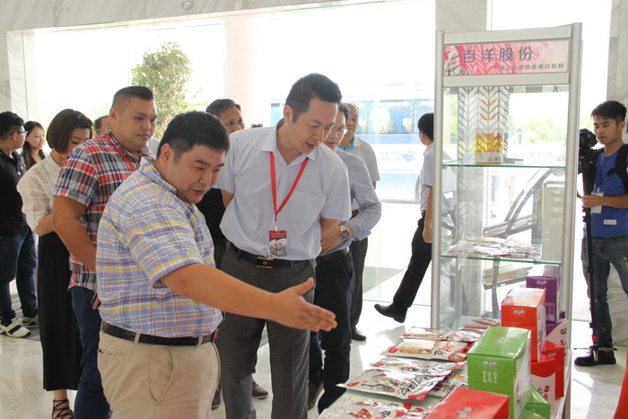 研習(xí)班一行在百洋股份總裁助理孫宇的陪同下,參觀了集團產(chǎn)品展示大廳,品嘗了集團近期推出的芭浪魚、北海魚仔、爽口漁翅等休閑食品。在隨后的座談會上,孫宇總裁助理向?qū)W員一行詳細介紹了百洋的發(fā)展歷程、生產(chǎn)經(jīng)營及近期出口貿(mào)易情況,對完善的水產(chǎn)產(chǎn)業(yè)鏈進行重點闡述。學(xué)員們還就公司發(fā)展、未來規(guī)劃及貿(mào)易等方面與孫總助進行了互動,并對百洋在行業(yè)內(nèi)取得的成績以及集團多元化的經(jīng)營模式交口稱贊。