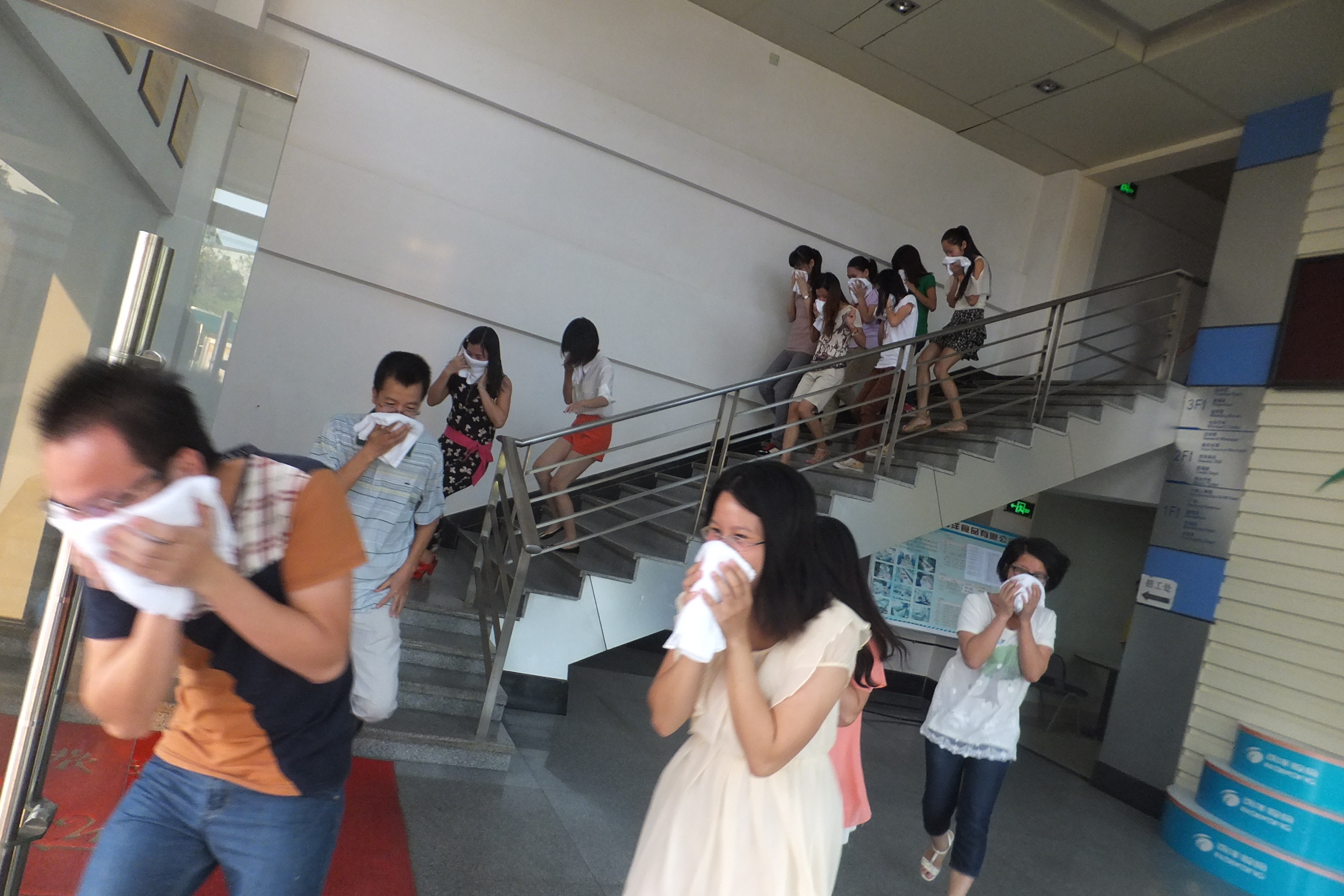 聽到警報(bào)聲,各部門消防安全負(fù)責(zé)人立即指導(dǎo)員工快速疏散,大家彎著腰、捂住口鼻,沿著公司指定樓梯口快速前進(jìn),有序撤離到安全地帶,負(fù)責(zé)人隨即清點(diǎn)人數(shù),并層層向上匯報(bào)。員工全部安全疏散完畢后,公司還從如何報(bào)火警、火災(zāi)的預(yù)防、火場(chǎng)自救及逃生方法等消防安全基本常識(shí)進(jìn)行了講解,并現(xiàn)場(chǎng)演示了滅火器的操作程序。