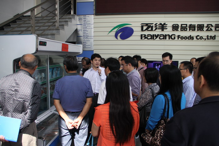 代表們興致勃勃參觀了集團(tuán)產(chǎn)品展示廳,并聽取李逢青介紹了集團(tuán)的發(fā)展歷程及公司研發(fā)的羅非魚食品、生物制品等產(chǎn)品情況。在展廳,代表們還品嘗了百洋的羅非魚特色美食,對(duì)美食贊不絕口,紛紛詢問公司的即食菜品、休閑食品銷售渠道相關(guān)信息。