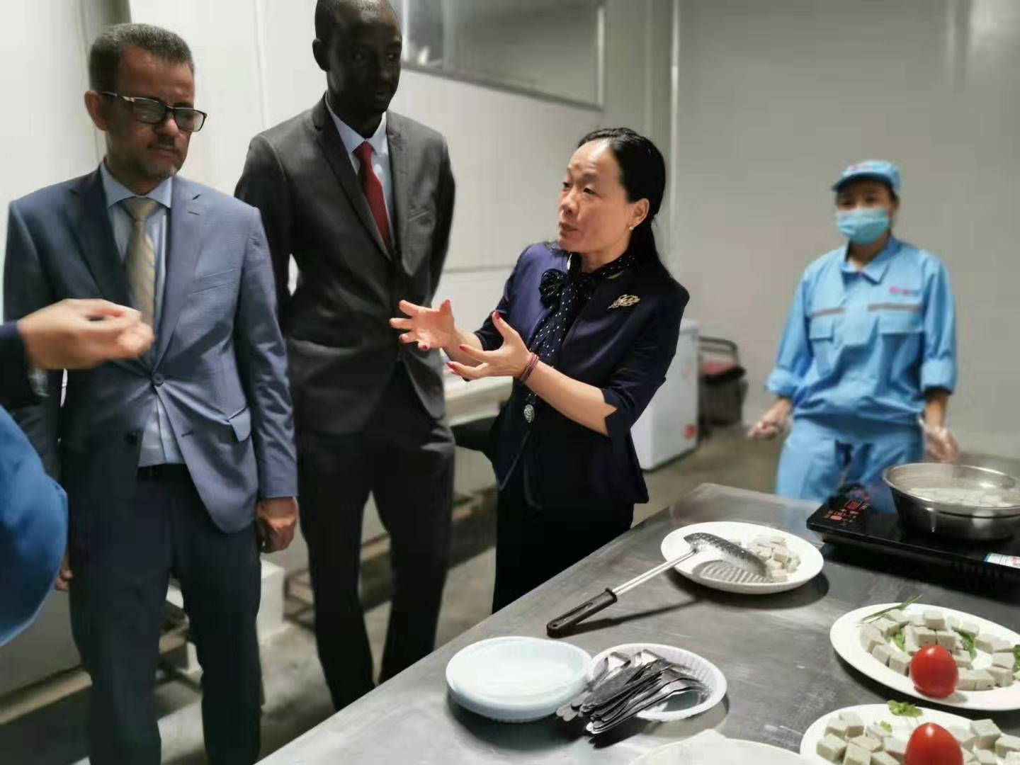 王玲副總裁介紹公司生產(chǎn)的魚糜產(chǎn)品。