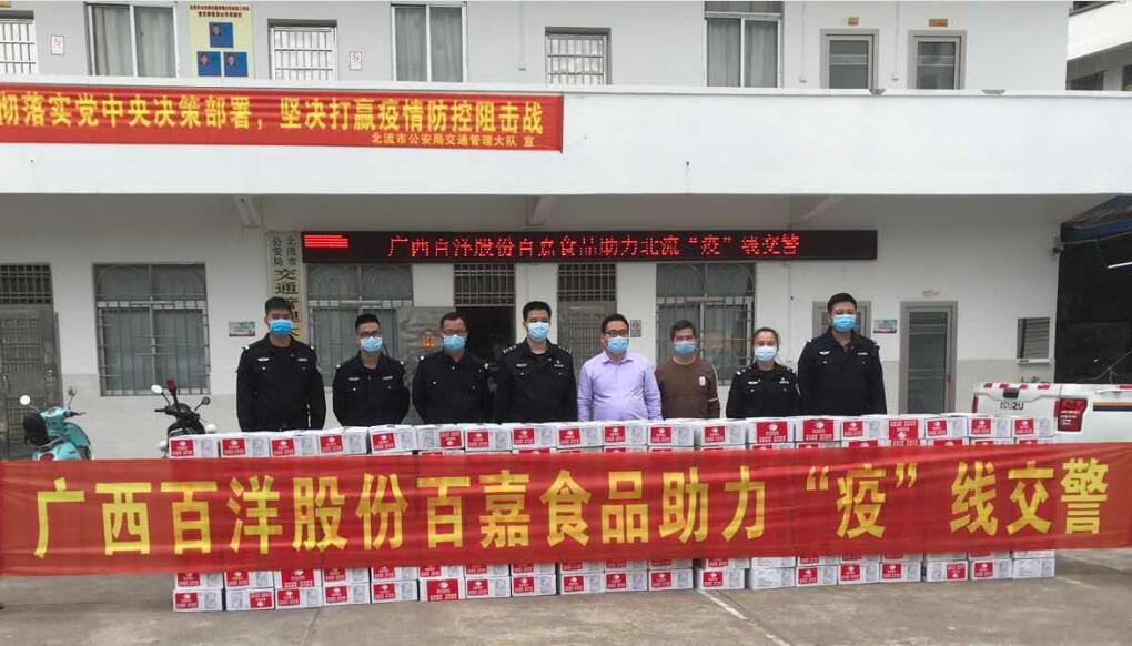 百洋股份旗下全資子公司廣西百嘉食品有限公司助力北流交警抗“疫”