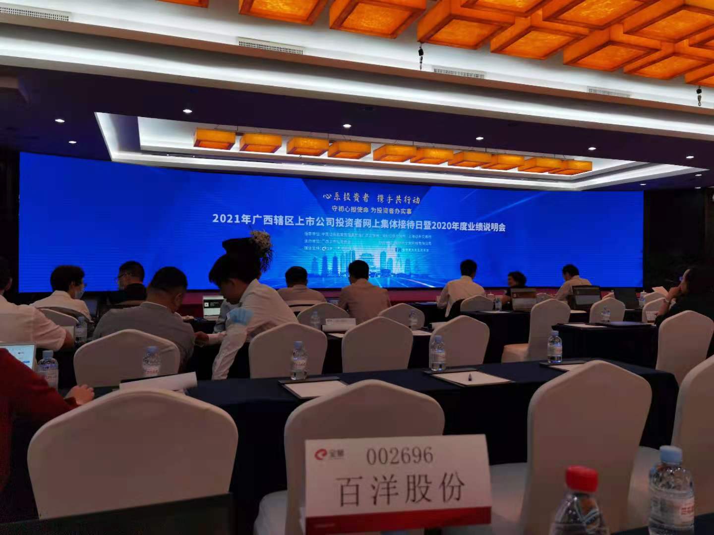 2021年度“上市公司投資者網(wǎng)上集體接待日”系列活動于近期正式拉開帷幕,廣西轄區(qū)上市公司投資者網(wǎng)上集體接待日活動于5月21日在南寧舉辦,百洋股份董事會秘書、證券事務(wù)代表參加了接待活動。
