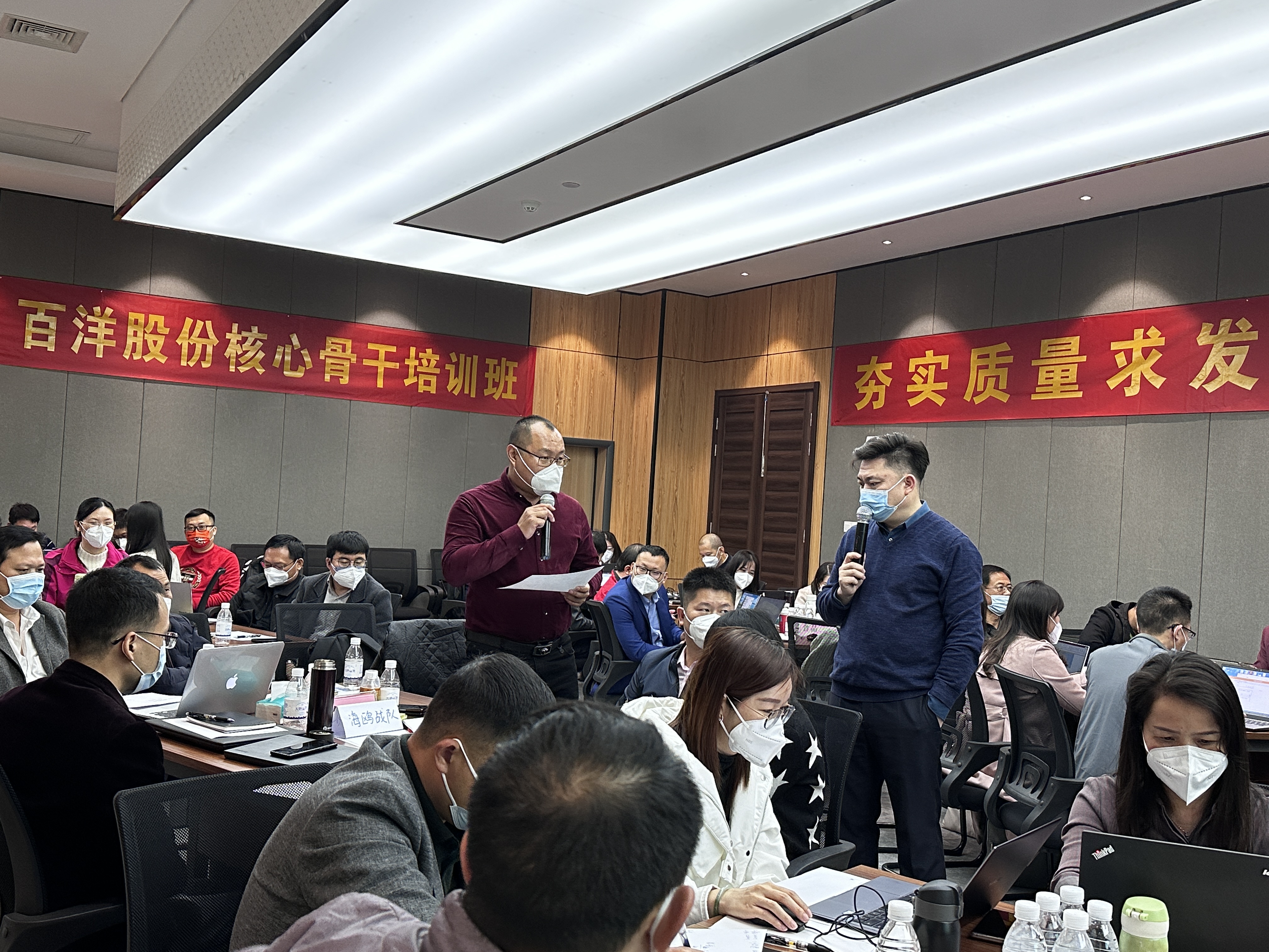 此次培訓(xùn),主要圍繞百洋股份新一輪戰(zhàn)略目標(biāo)和2023年經(jīng)營(yíng)目標(biāo),聚焦分析2022年業(yè)績(jī)差異找根因,制定解決措施及2023年預(yù)算目標(biāo)達(dá)成路徑等內(nèi)容展開(kāi)的一次專(zhuān)題培訓(xùn)。培訓(xùn)過(guò)程中,培訓(xùn)老師引導(dǎo)學(xué)員圍繞公司政策、環(huán)境、客戶(hù)、生產(chǎn)、財(cái)務(wù)等要素,深入分析2022年經(jīng)營(yíng)過(guò)程中的問(wèn)題,探討解決措施,并針對(duì)2023年業(yè)績(jī)目標(biāo)達(dá)成路徑開(kāi)展深入研討,為2023年業(yè)務(wù)開(kāi)展奠定了良好基礎(chǔ)。培訓(xùn)最后,公司總經(jīng)理劉康對(duì)本次培訓(xùn)作了總結(jié),并給本次培訓(xùn)中的優(yōu)秀團(tuán)隊(duì)和優(yōu)秀學(xué)員頒發(fā)了榮譽(yù)證書(shū)。