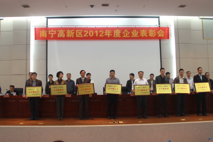 3月12日上午,南寧高新技術(shù)開發(fā)區(qū)管委會(huì)隆重舉行2012年企業(yè)表彰大會(huì),對(duì)在經(jīng)濟(jì)發(fā)展和技術(shù)創(chuàng)新等方面做出突出貢獻(xiàn)的企業(yè)和先進(jìn)個(gè)人進(jìn)行了表彰,百洋集團(tuán)再次獲得“高新區(qū)綜合實(shí)力二十強(qiáng)企業(yè)”榮譽(yù)。