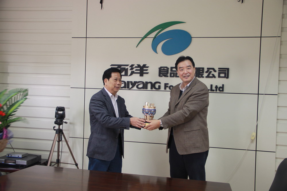 集團(tuán)董事長(zhǎng)孫忠義熱情接待了溫守榮副主任一行,在百洋食品公司會(huì)議室進(jìn)行了親切座談,溫守榮副主任還代表人大向企業(yè)送來了慰問品,孫忠義董事長(zhǎng)對(duì)溫守榮副主任一行表示感謝。