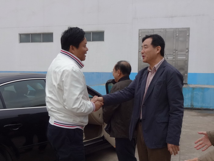 姚磊副廳長(左一)受到孫忠義董事長的熱情歡迎。