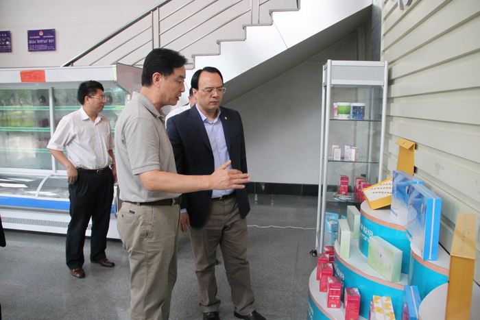 孫忠義董事長(zhǎng)(右二)向林立副行長(zhǎng)(右一)介紹集團(tuán)產(chǎn)品情況。