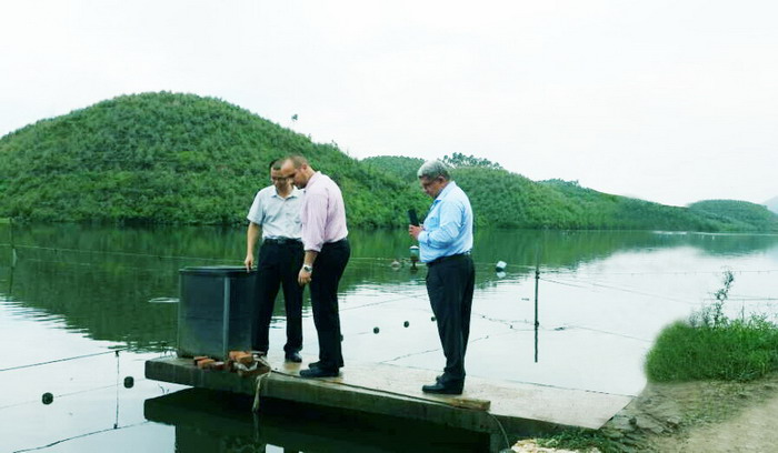 考察團一行參觀雨嘉水產(chǎn)養(yǎng)殖基地。