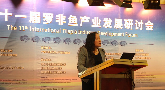 2014年11月19日,為期兩天的第十一屆羅非魚產(chǎn)業(yè)發(fā)展研討會在廣西北海市圓滿落下帷幕。作為行業(yè)唯一產(chǎn)業(yè)鏈最完善的國家重點(diǎn)龍頭企業(yè),百洋股份副總裁王玲在會上發(fā)表講話。