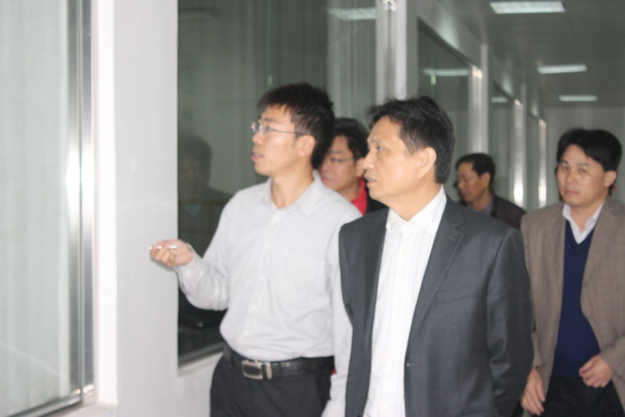 陳良堯副局長(前中)在白洋總經(jīng)理(左一)陪同下參觀公司生產(chǎn)車間。