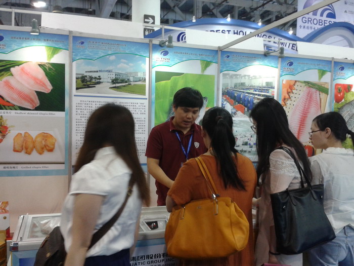 與會(huì)觀眾正在咨詢了解公司羅非魚產(chǎn)品。 2015年5月27日,在廈門國際會(huì)展中心剛剛落幕的首屆2015亞太水產(chǎn)養(yǎng)殖博覽會(huì)(下稱“水博會(huì)”)上,百洋股份向來自全球各地的專業(yè)觀眾展示了公司優(yōu)質(zhì)的冰鮮羅非魚產(chǎn)品,受到廣泛關(guān)注。