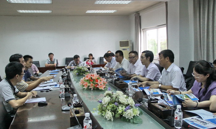 范斌副司長(右三)聽取孫忠義董事長關于集團生產(chǎn)經(jīng)營、對外貿易情況匯報