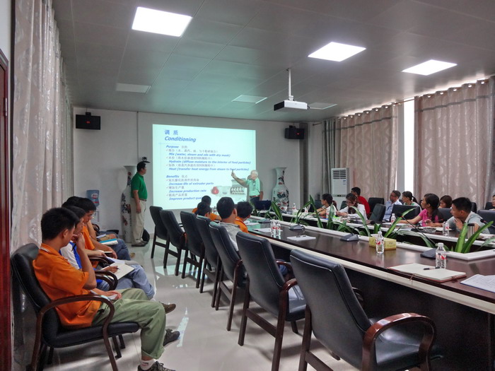 當(dāng)天,歐克飛博士一行與公司品管部、技術(shù)部、生產(chǎn)部等相關(guān)人員展開座談交流。歐克飛博士在聽取公司的發(fā)展歷程、生產(chǎn)經(jīng)營(yíng)及技術(shù)研發(fā)等方面情況介紹后,對(duì)公司先進(jìn)的生產(chǎn)工藝及質(zhì)量可追溯體系表示稱贊。歐克飛博士從事水產(chǎn)飼料行業(yè)多年,具備豐富的專業(yè)知識(shí)和行業(yè)經(jīng)驗(yàn),他帶來了美國(guó)及其他國(guó)家的近期飼料貿(mào)易概況,與參會(huì)者就水產(chǎn)飼料行業(yè)現(xiàn)狀與發(fā)展前景展開深入分析;同時(shí)結(jié)合實(shí)際,現(xiàn)場(chǎng)解答了公司在飼料加工過程中遇到的問題,并對(duì)公司今后的生產(chǎn)發(fā)展提出了指導(dǎo)性意見和建議,為全體參會(huì)者送上了一道豐富的技術(shù)大餐。