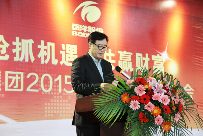 孫忠義董事長首先向所有與會經(jīng)銷商代表表示感謝。他回顧了百洋十余年來的發(fā)展歷程,強調(diào)百洋的發(fā)展離不開廣大新老客戶的支持,表示百洋始終秉承誠信、共贏的合作原則,堅持以市場為導(dǎo)向,依托集團產(chǎn)業(yè)規(guī)模優(yōu)勢及行業(yè)資源優(yōu)勢,為客戶提供更優(yōu)質(zhì)的服務(wù),創(chuàng)造更大的價值。2015年生豬市場不斷回暖,養(yǎng)豬群體向集中規(guī)?;l(fā)展,豬料產(chǎn)業(yè)迎來新的發(fā)展機遇。未來,百洋將充分發(fā)揮示范、帶動和輻射作用,發(fā)揮產(chǎn)業(yè)鏈配套經(jīng)驗優(yōu)勢,為經(jīng)銷商、養(yǎng)殖戶提供種苗、飼料、養(yǎng)殖技術(shù)等系列服務(wù),實現(xiàn)共同致富。